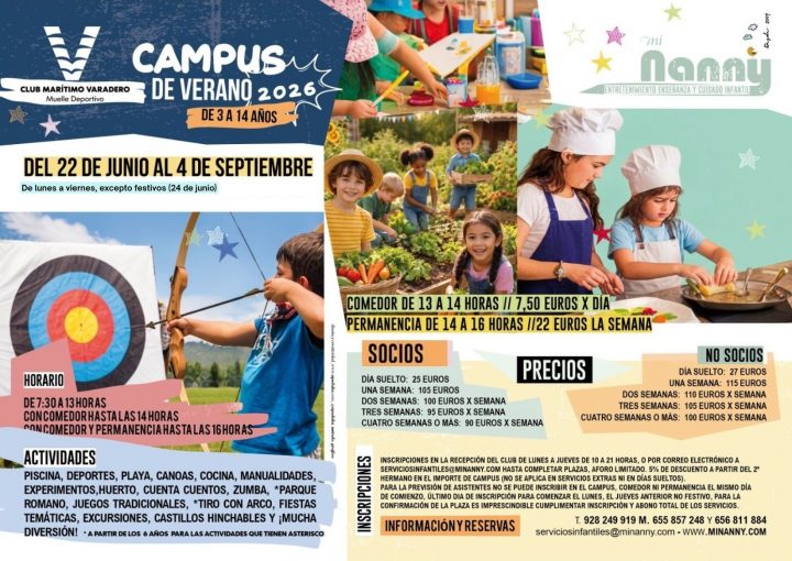 Como cada año, llega el campus de verano 2026 para niños de 3 a 14 años, que se llevará a cabo del 22 de junio al 4 de septiembre en colaboración con Mi Nanny.