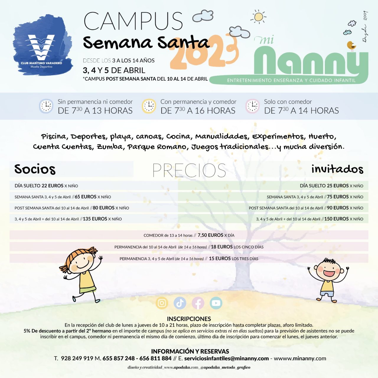¡Vuelve el Campus de Semana Santa! Como cada año, con la llegada de la Semana Santa, llega el CAMPUS a nuestro Club con Mi Nanny del 3 al 5 de abril (ambos inclusive). Los más peques de la casa podrán disfrutar de: Deportes de playa, Piscina, Canoas, Cocina, Manualidades, Experimentos, Huerto, Cuenta Cuentos, Parque Romano, […]