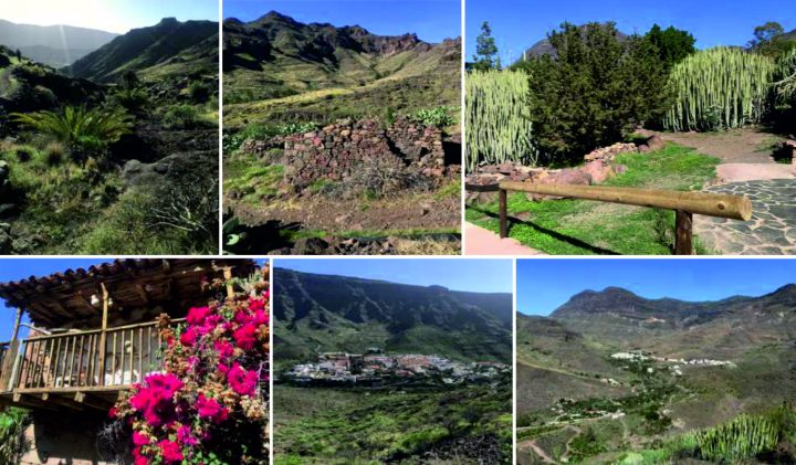 La primera parte de la ruta comienza en la Degollada de La Aldea, (el Mirador de San Nicolás), cruce de las carreteras GC-204 y GC-220 que van a Tasartico y a Mogán y que se encuentra a una altitud de 680 msnm, para descender hacia Tasarte, (464 msnm). Desde aquí subiremos hasta la Degollada de Tasarte Veneguera, (655 msnm), en la linde de los municipios de Las Aldea y Mogán. Continuamos la segunda parte de la ruta descendiendo por el Barranco de Veneguera, pasando por las casas de La Cogolla para llegar hasta Casas de Veneguera, (277 msnm). Aquí visitaremos la Iglesia y su plaza, las casas viejas y el parque de El Cardonal en el Barranco de Las Marreras. La tercera y última parte de la ruta la hacemos saliendo en dirección al barrio de Los Almácigos y Huerta Vieja para tomar el sendero que nos llevará hasta la Cruz de Mogán o de la Fortaleza, (421 msnm), desde donde tendremos unas maravillosas vistas de Los Azulejos. Ya solo no queda bajar hasta el pueblo de Mogán, (256 msnm), donde terminaremos la ruta.